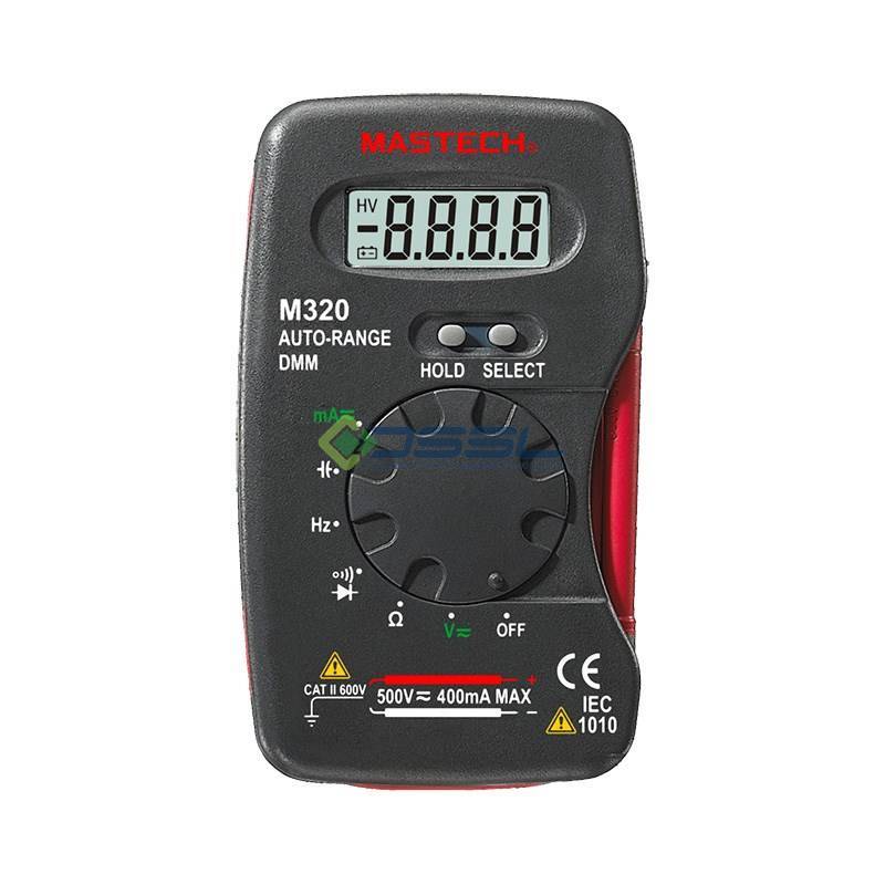 Портативный цифровой мультиметр Mastech M320 для измерения напряжения AC и DC, силы AC и DC, сопротивления, электрической емкости и частоты, прозвонки целостности цепи, тестирования диодов (падение однонаправленного напряжения) базируется на АЦП двойного интегрирования, оборудован LCD-дисплеем (4 цифры, максимальное значение 3999), зуммером. Для удобства переноски корпус устройства разработан с учетом надежной фиксации измерительных щупов (в комплекте).