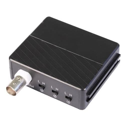 RA-H оборудован переключателем для точной настройки дистанции передачи, разъемом BNC для подключения к видеорегистратору, клеммной колодкой для подключения витой пары и питания, LED-индикатором питания и винтовой клеммой заземления. Корпус — пластиковый. Питание — DC 12 В, 0.1 А (БП в комплект не входит). Рабочие температуры — –5 ?С… +45 ?С. Размер — 68?22?55 мм.