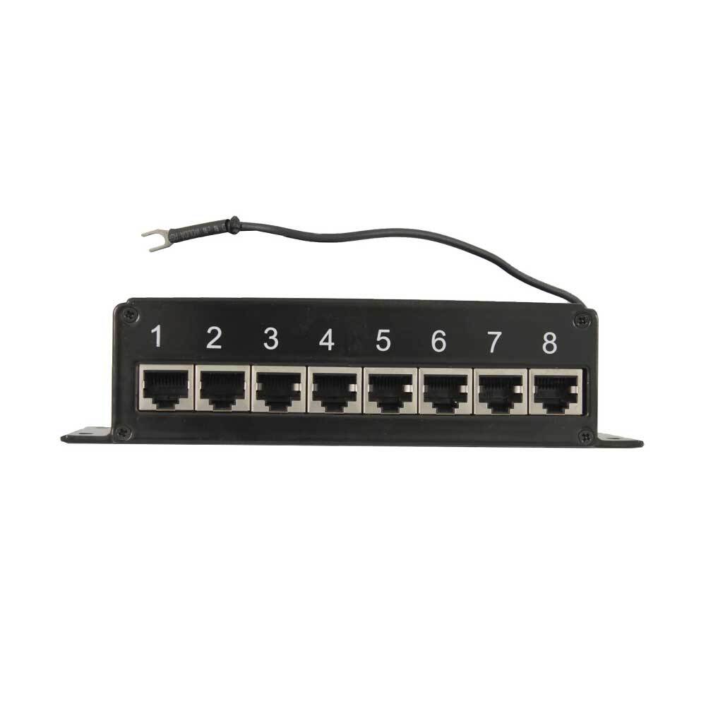 Интерфейсы представлены восемью входными и восемью выходными RJ-45. Предусмотрен кабель для подключения к контуру заземления. Рабочие температуры — –40 ?С... +80 ?C. Размер — 168?42?75 мм.