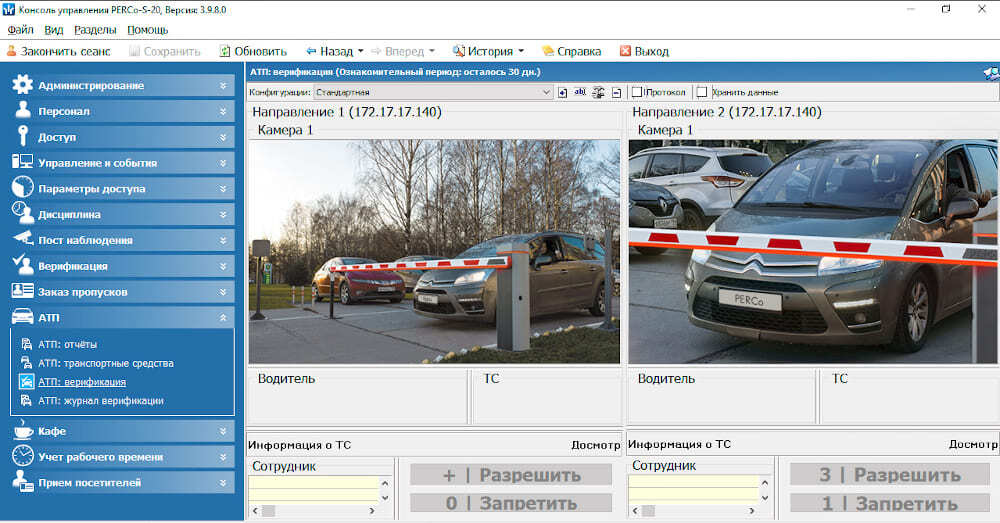 Автоматическая установка модуля — совместно с базовым ПО PERCo S-20. После ознакомления в течении 30 дней нужно приобрести лицензию PERCo.